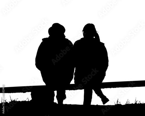 Vector Stock Silhouettes Of Boy And Girl Sitting On A Bench