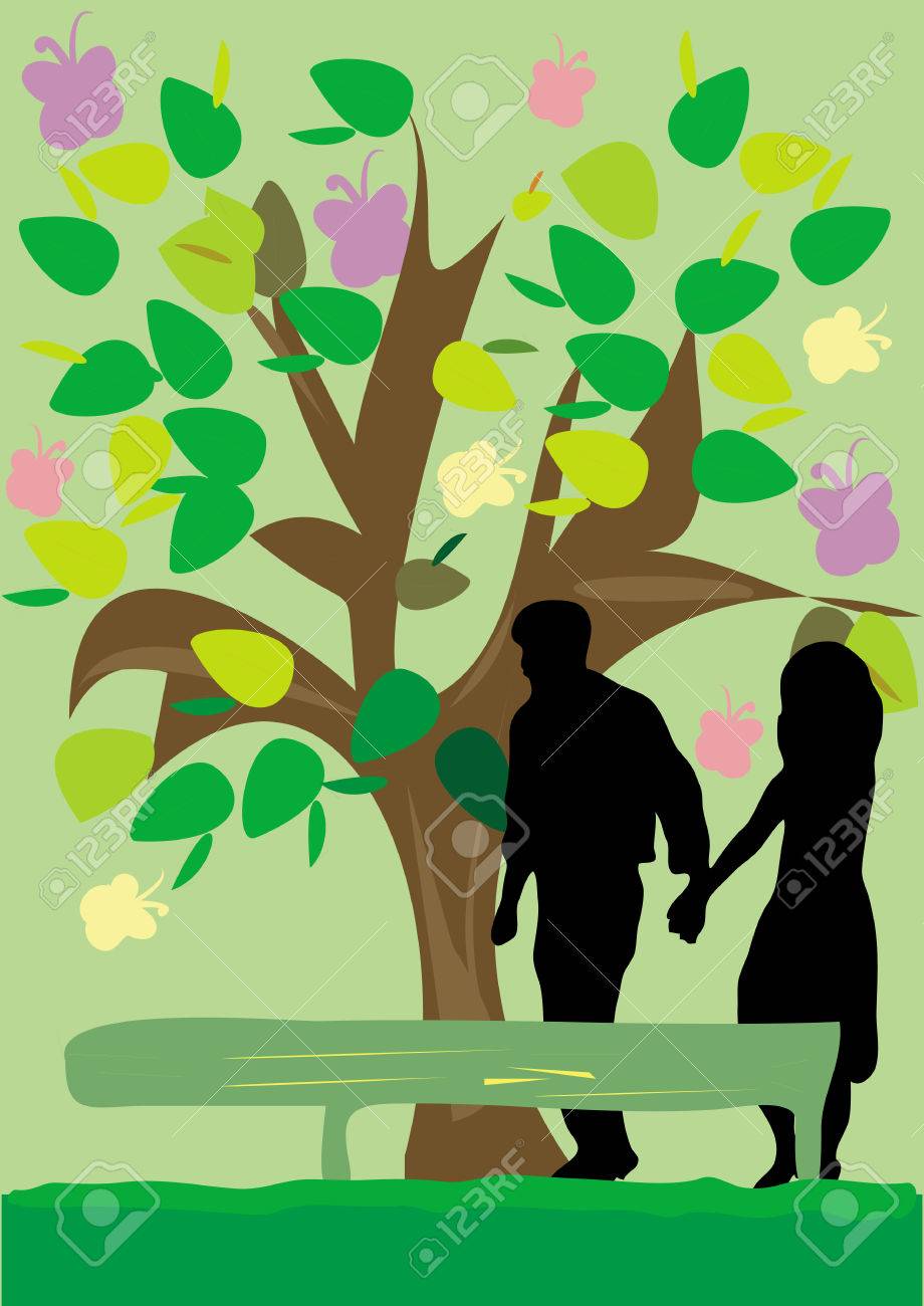 An Illustration Of A Silhouette Of A Couple Walking In The Park