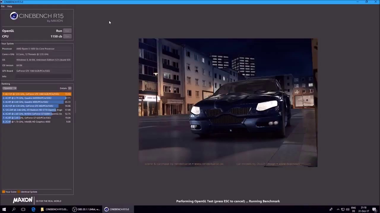 Cinebench R15 Nvidia Gtx 1060 Opengl Benchmark Youtube
