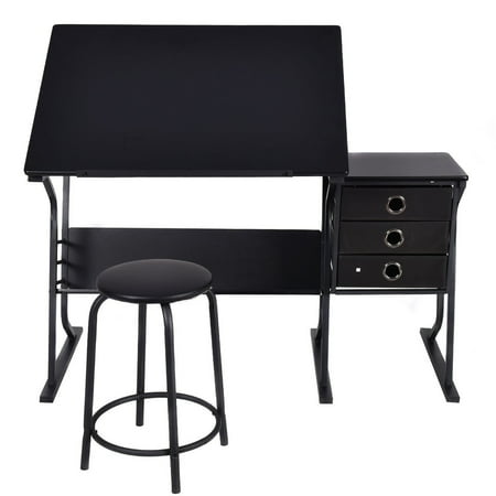 Black Adjustable Drafting Table W Stool Side Drawers Walmart Com