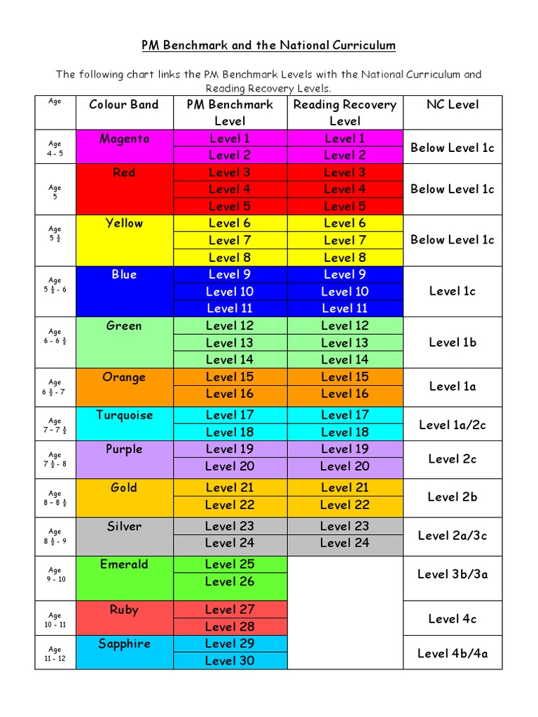 Pm Reading Level Benchmark National Curriculum Art Materials