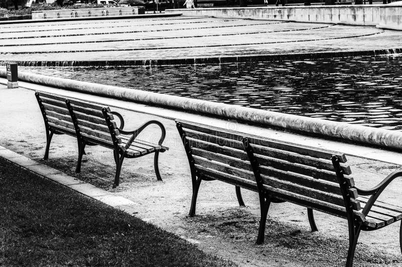 Lonely Park Bench In Black And White High Quality Nature Stock