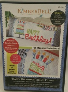 Kimberbell Happy Birthday Bench Pillow Embroidery Cd Kd530 Opend